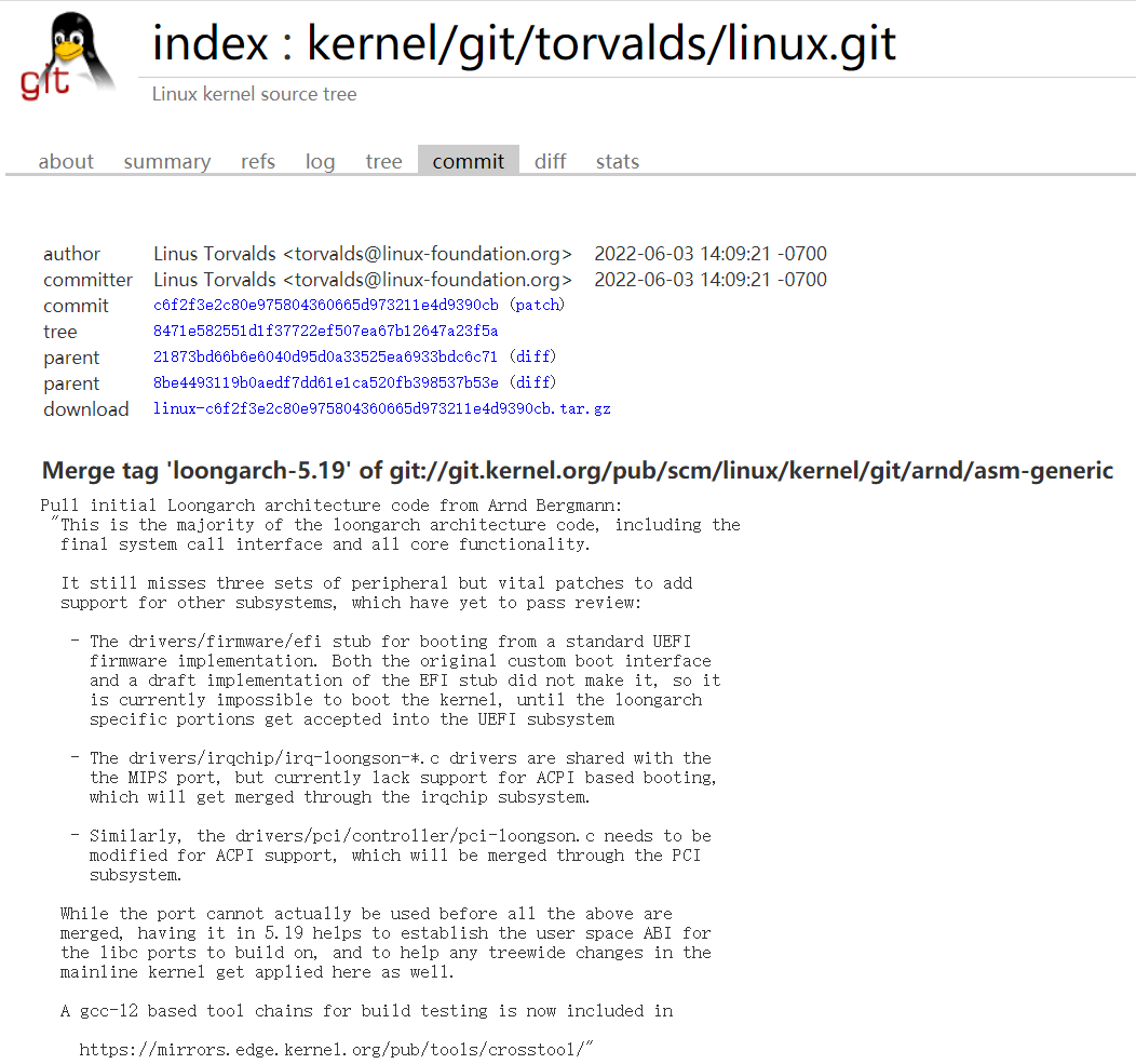 After more than a year of close collaboration with Loongson Technology, the Linux Kernel community officially merged the code of LoongArch on the morning of June 4, 2022, Beijing time. With the official release of Linux 5.19-rc1, the main source code of LoongArch has been merged into the kernel mainline, while the remaining is under review.