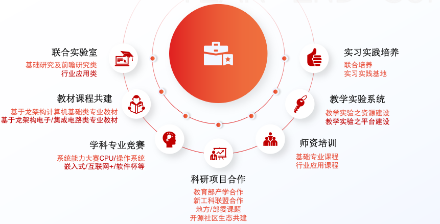 龍芯將從聯(lián)合實驗室、教材/課程共建、學科專業(yè)競賽、科研項目合作、師資培訓、教學實驗系統(tǒng)、實習實踐就業(yè)等多個領域切入,打造龍芯高等教育產(chǎn)學合作框架,形成高校信息化人才培養(yǎng)解決方案,毫無保留地分享龍芯信創(chuàng)人才培養(yǎng)經(jīng)驗和智慧。