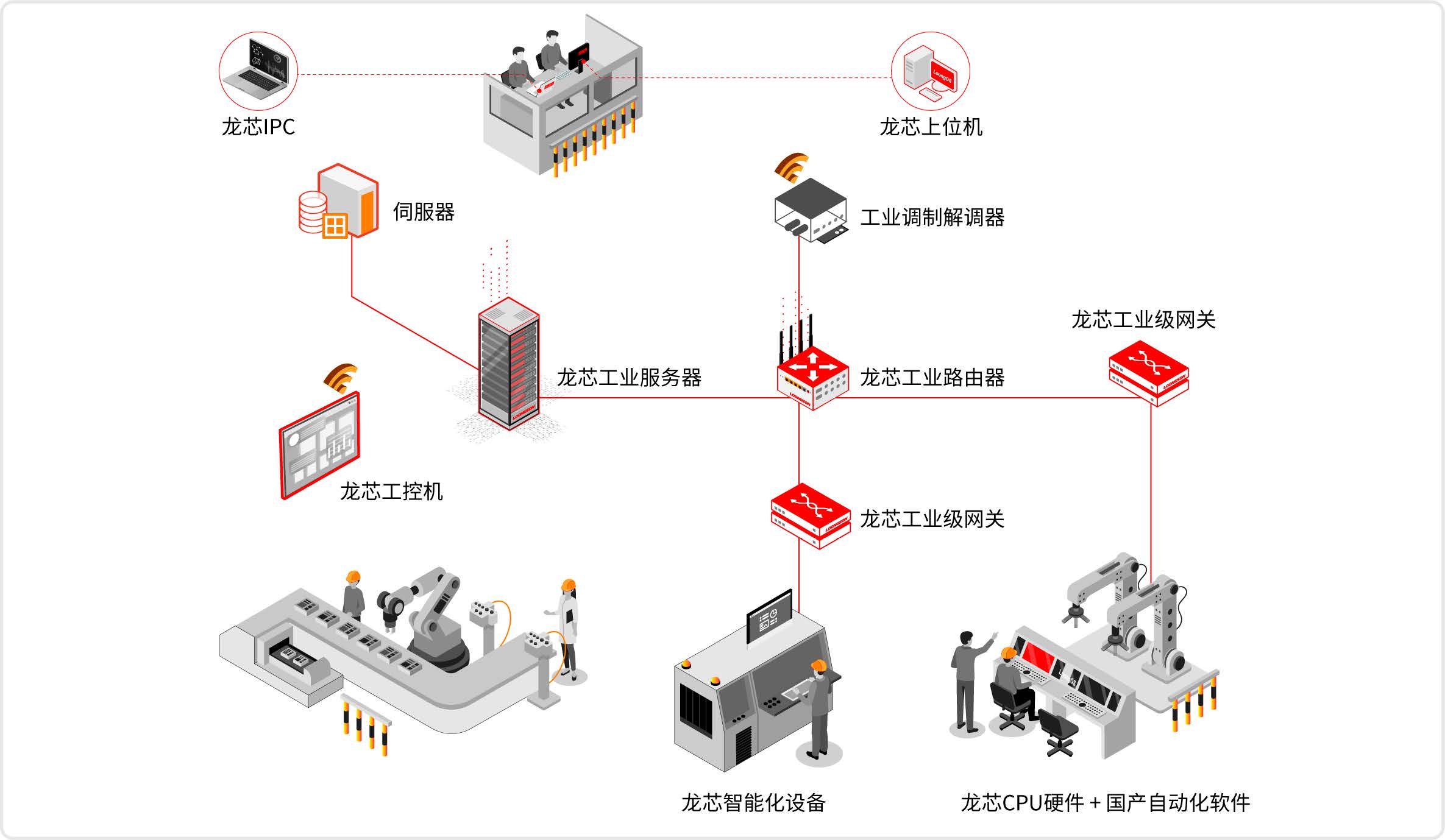 自主化工業(yè)智能產(chǎn)品是工業(yè)數(shù)字化、智能制造的主要載體和價(jià)值創(chuàng)造的核心。龍芯攜手合作伙伴,在設(shè)備端、邊緣端、控制端、應(yīng)用端等方面提供各種系統(tǒng)級(jí)解決方案。龍芯處理器已應(yīng)用于企業(yè)數(shù)字化轉(zhuǎn)型當(dāng)中,基于龍芯處理器的工業(yè)機(jī)器人、數(shù)控機(jī)床、數(shù)據(jù)采集終端、RTU、工業(yè)邊緣網(wǎng)關(guān)、PLC/DCS控制器、工業(yè)控制器、工業(yè)網(wǎng)絡(luò)設(shè)備、工業(yè)計(jì)算機(jī)等產(chǎn)品已經(jīng)應(yīng)用于工控、能源、交通、水利等領(lǐng)域。