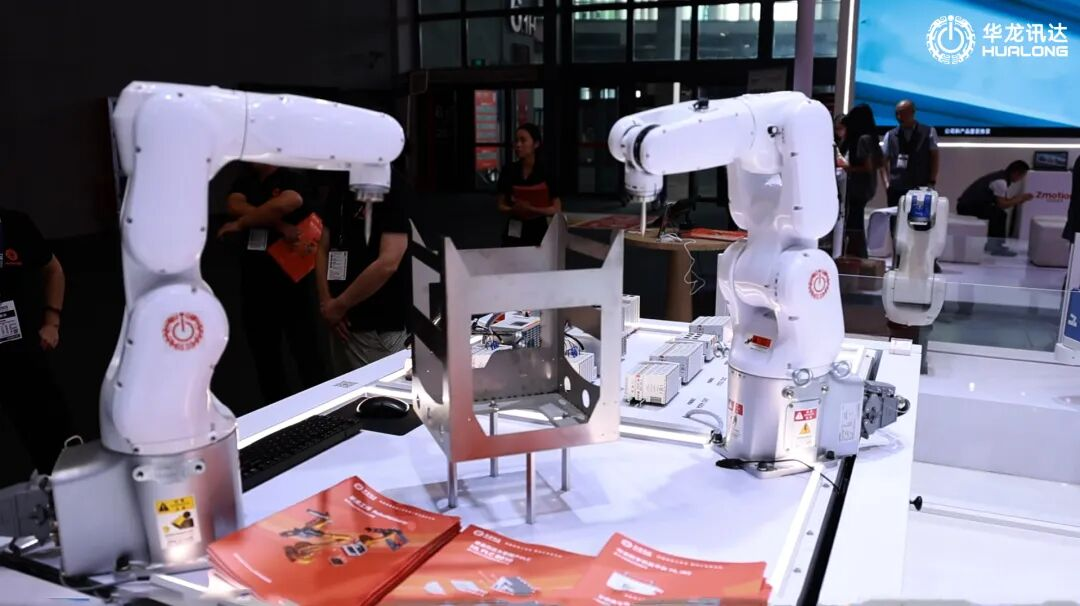 華龍訊達(dá)現(xiàn)場展示了由HL PLC 8010控制的具身智能機(jī)器人焊接產(chǎn)線。該產(chǎn)線采用兩臺龍芯PLC代替?zhèn)鹘y(tǒng)機(jī)器人專用控制器,實(shí)現(xiàn)了毫秒級協(xié)同作業(yè),展現(xiàn)出龍芯芯片在高端工業(yè)控制場景中的穩(wěn)定性能和實(shí)時響應(yīng)能力。 同時,產(chǎn)線集成全自主CPU芯片技術(shù)、PLC軟硬件技術(shù)、多機(jī)同步協(xié)作算法等工控領(lǐng)域核心底層技術(shù),打破了國外在高端工業(yè)控制領(lǐng)域的長期壟斷,為裝備制造業(yè)智能化轉(zhuǎn)型提供了堅實(shí)的底層技術(shù)支撐。
