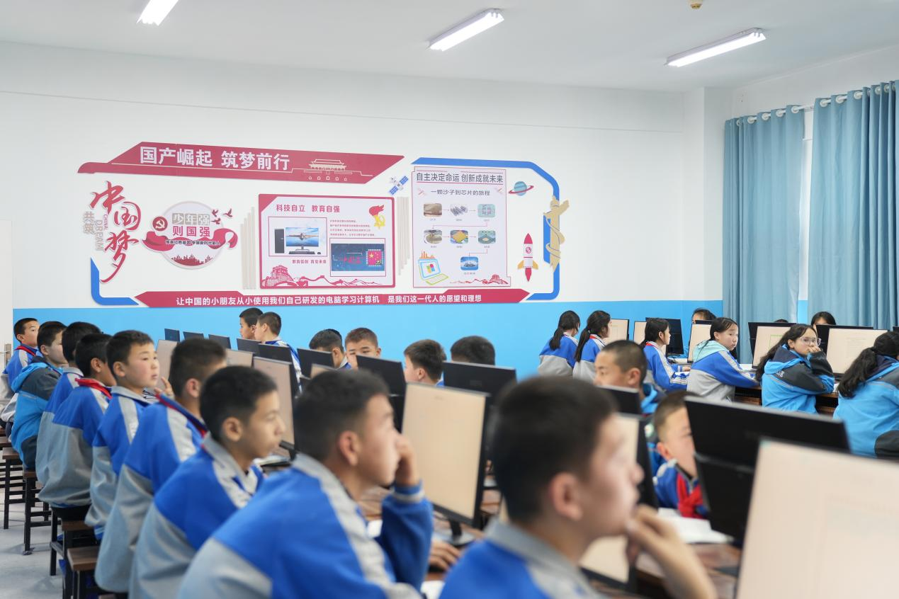在新疆尼勒克縣多所小學(xué),龍芯信創(chuàng)教育項(xiàng)目為5000余名少數(shù)民族學(xué)生打開探索信息科技的大門,讓他們借助國(guó)產(chǎn)計(jì)算機(jī)構(gòu)建對(duì)科技世界的初步認(rèn)知。